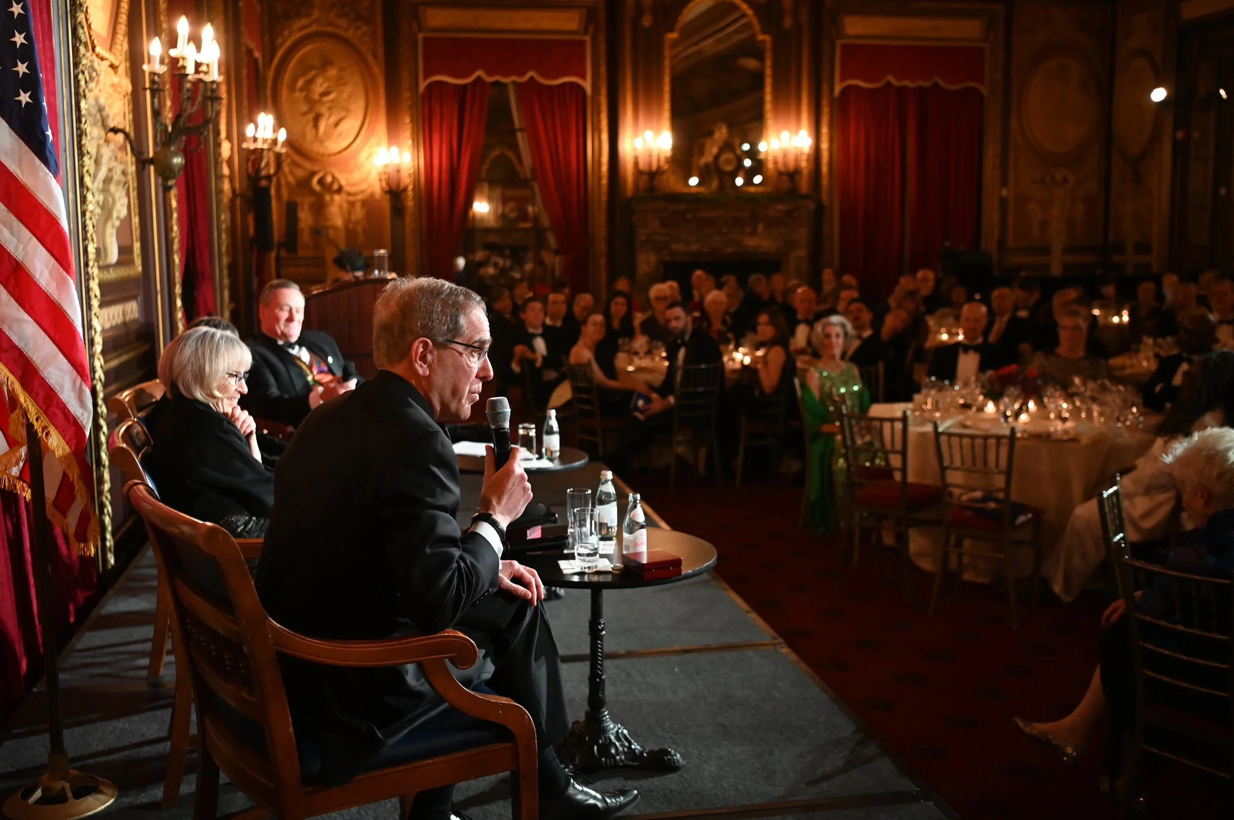 2025 Honoree Christopher Eisgruber answers an audience question during the Honoree panel discussion at the 2025 Gold Medal Gala.
